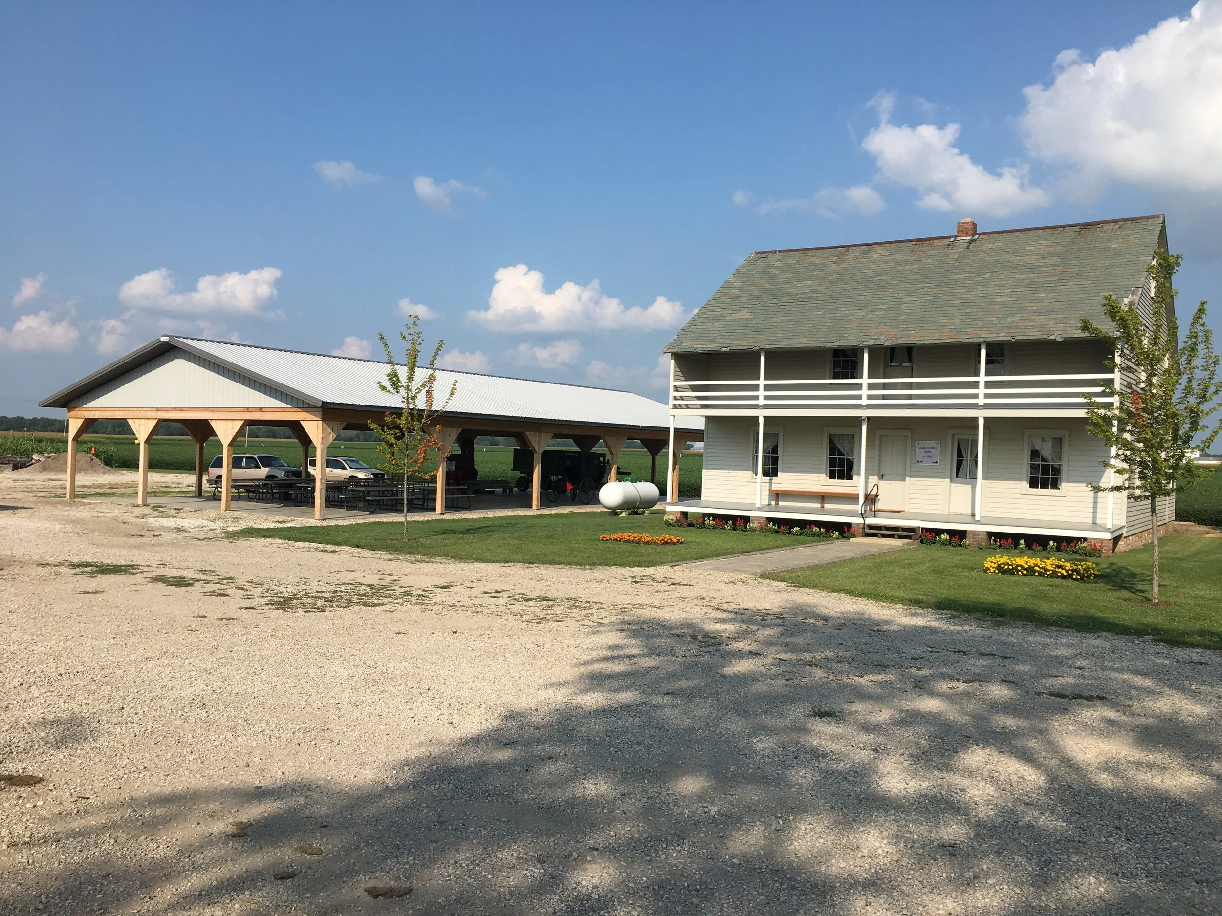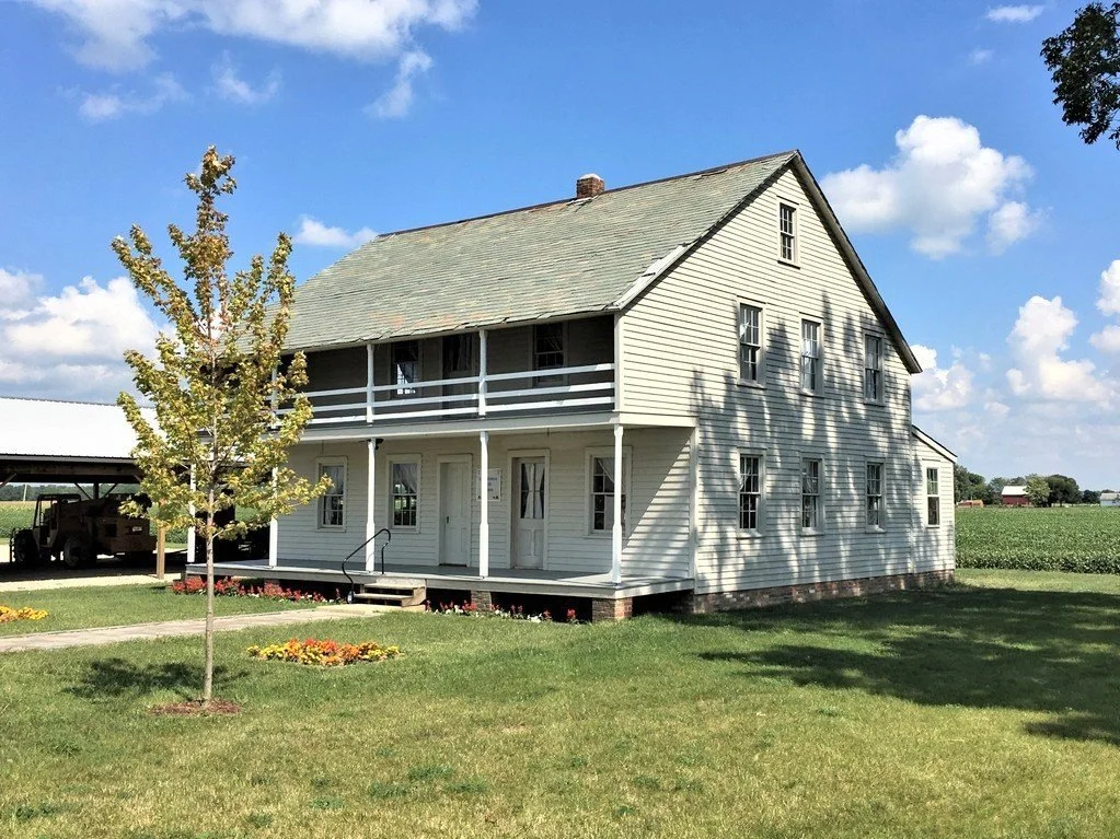 The Schrock house at it's original location on County road 275 East southeast of Arthur, Illinois. The concrete stairs in front of the house were designed for easier access to wagons and buggies and can still be seen at the original location.